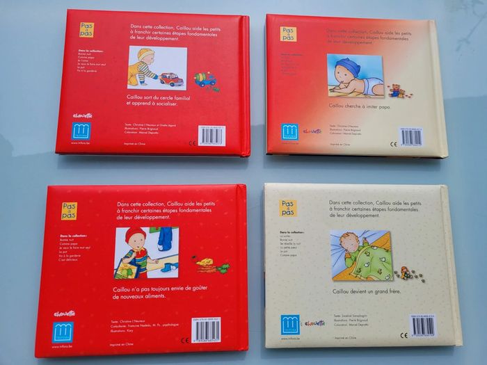 CAILLOU LIVRE COUVERTURE MOUSSE - Caillou, La Petite Soeur (41) - Caillou, c'est délicieux - Caillou, comme papa (44) - Caillou va à la garderie (44) En très bon état, un tout petit trou d'épingle sur la couverture de La Petite Soeur Mes autres livres enfants : #livreenfantmooglou