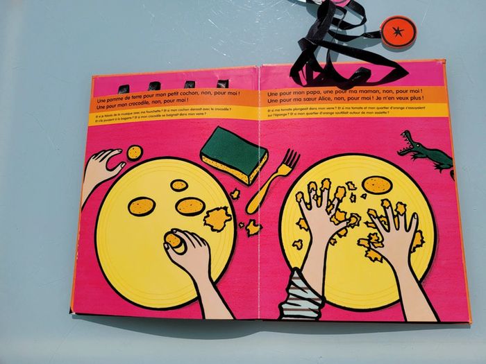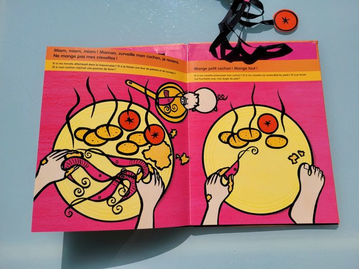 HUM, C'EST BON! Un livre étonnant pour faire des bêtises dans son assiette : renverser son verre, patauger dans le plat, s'amuser avec la nourriture sans se faire gronder ! Une histoire à mimer avec des objets en carton attachés par des rubans et la découverte du plaisir de manger, d'être à table ou sur le pot... Hum, c'est bon ! Dimensions ‎21 x 1.2 x 27.5 cm Broché ‎16 pages Éditeur ‎ : Seuil Un coin légèrement abîmé mais en bon état Mes autres livres enfants : #livreenfantmooglou