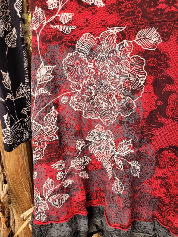 DESIGUAL Superbe robe fluide taille M qui taille un bon 40 Noire à motifs blanc et rouge La marque est inscrite à l'interieur de la robe dans le dos, brodée dans le dos et sur l'étiquette intérieur Très bon état #tailleMmooglou #40femmemooglou