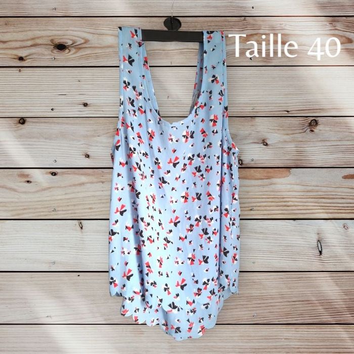✨ Haut Naf Naf – Taille 40 – Très bon état ✨ 👉Craquez pour ce joli haut signé Naf Naf, idéal pour les beaux jours ! 🌞 🔹 Taille : 40 🔹 Couleur : Fond bleu clair avec un imprimé type oiseaux rouge, noir et blanc 🔹 Matière : Fluide et légère, parfaite pour l'été 🔹 Coupe : Ample et confortable, style débardeur évasé avec encolure ronde et dos nageur 🔹 État : Très bon état, porté quelques fois, aucun défaut à signaler ❤️Ce haut apportera une touche de fraîcheur et de gaieté à vos tenues. Il se marie parfaitement avec un jean, un short ou une jupe.❤️ 📦 Envoi rapide et soigné 💌 N’hésitez pas à me contacter si vous avez des questions ! #kimiiietailleL #nafnaf #hautfemme #debardeur #taille40 #modefemme #vetementete #hautfluide #lookete #imprimeoiseaux #bleuclair #hautnafnaf #secondemain