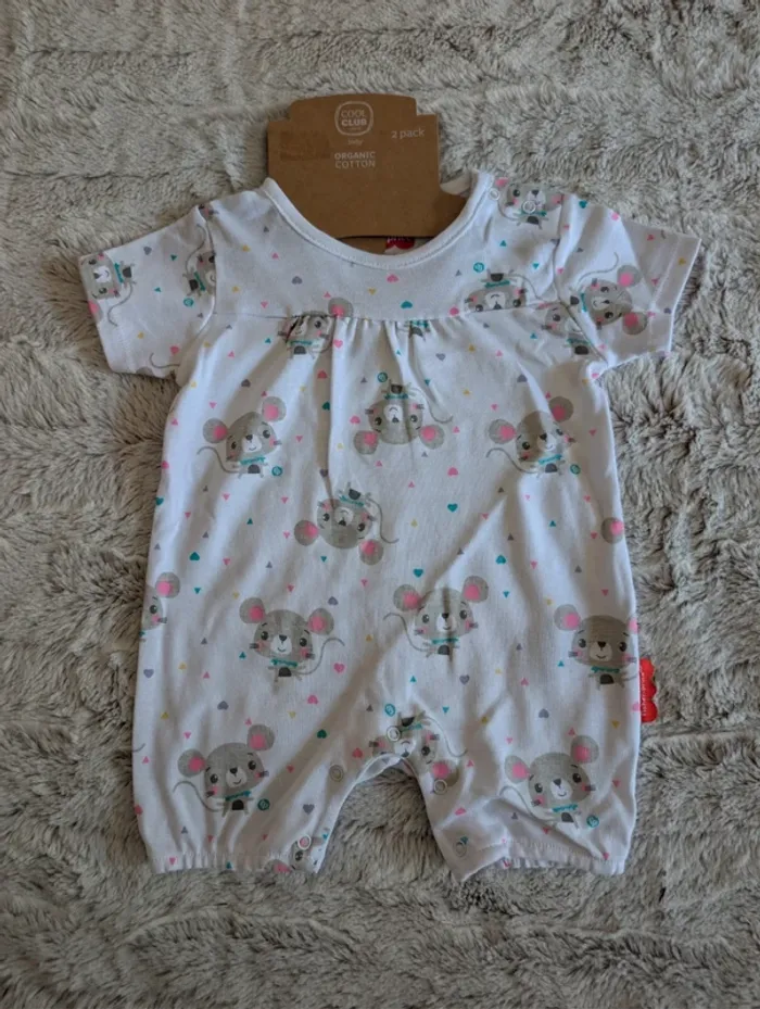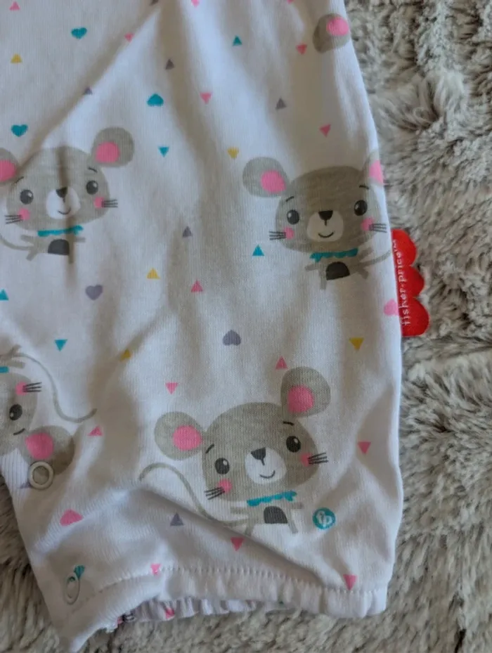 Combinaison neuve Fisher price Taille 68 6 mois Blanc et gris avec souris 🐭 🐭 🐭 Neuf avec étiquette #combinaison #combi #neuf #coolclub #1mois #56cm