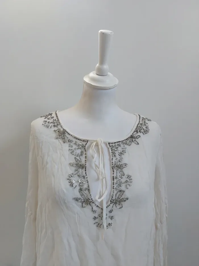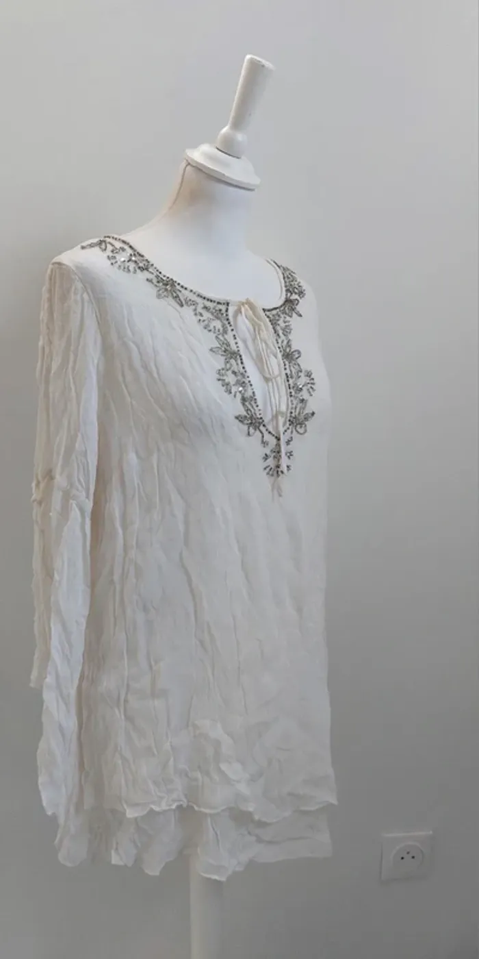 Tunique asymétrique voile blanc manches évasées 42 - photo numéro 1