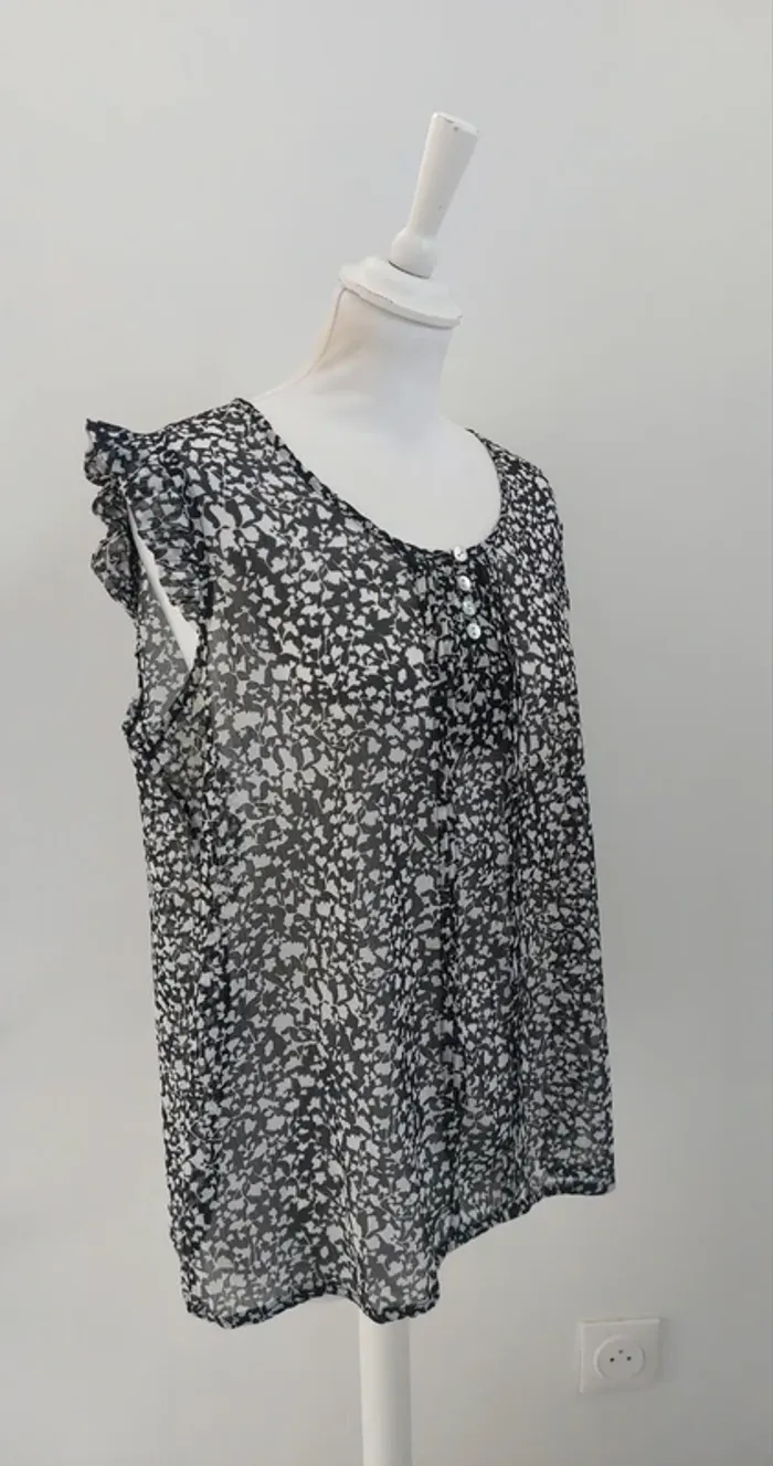 🚀 Envoi rapide et soigné ✨️Réductions sur les lots possible ➡️ Nombreux articles dans cette taille n'hésitez pas à parcourir toute la boutique pour faire un lot.🤗 Blouse fluide en transparence sans manche à motifs noir et blanche, légère, et agréable à porter. De la marque Tout simplement. Très bon état, taille XL/42. #blousefluideimprimée42 #blousefluidesansmanche42 #blousesansmancheimprimée42 #toutsimplementfemme #envoirapideetsoigné #reductionsurleslots #envoirapide #envoisoigné S11