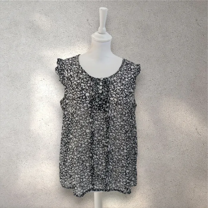 Blouse fluide sans manche imprimé fleuris en transparence 42