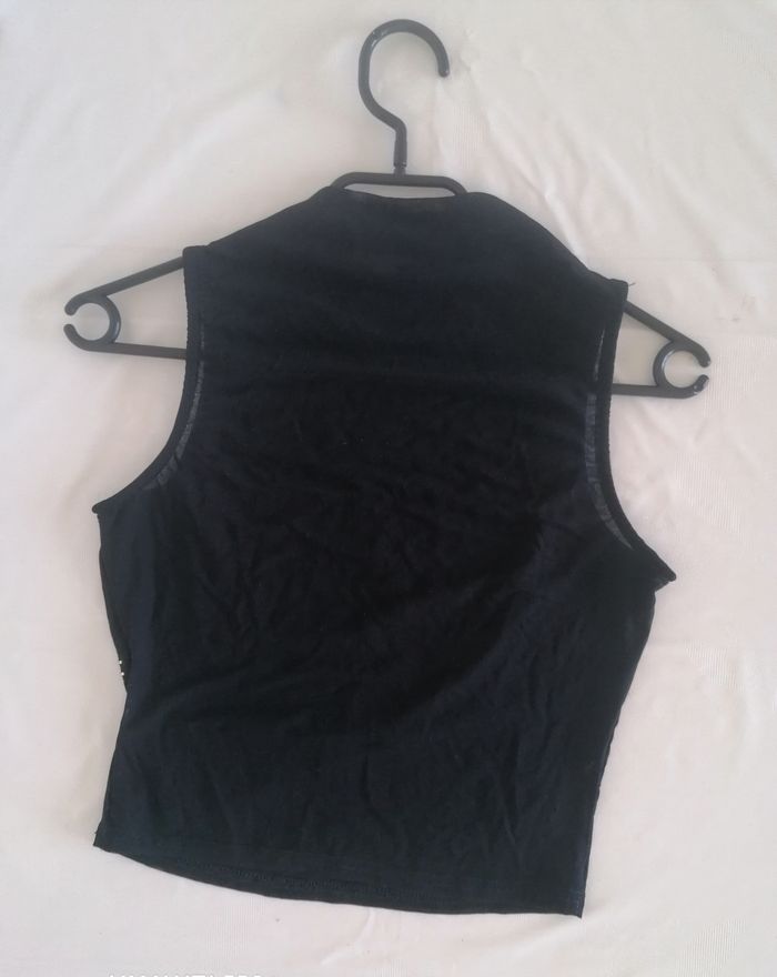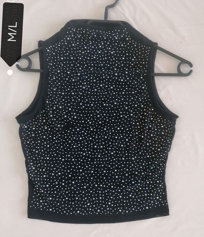 Débardeur femme, taille M/L. Noir. Derrière transparent. ( manque quelques strass invisible). Porté. Prix 3€