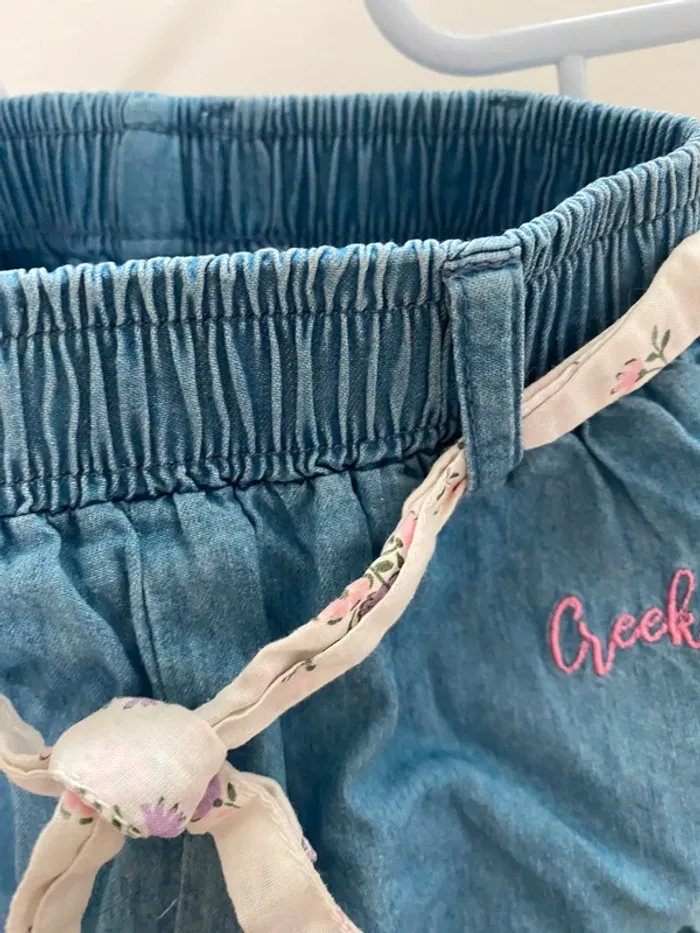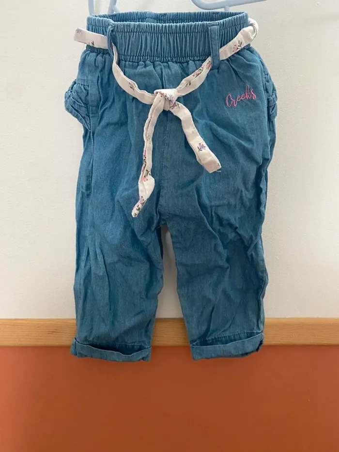 Jean large creeks avec ceinture à fleurs 9 mois Peu porté