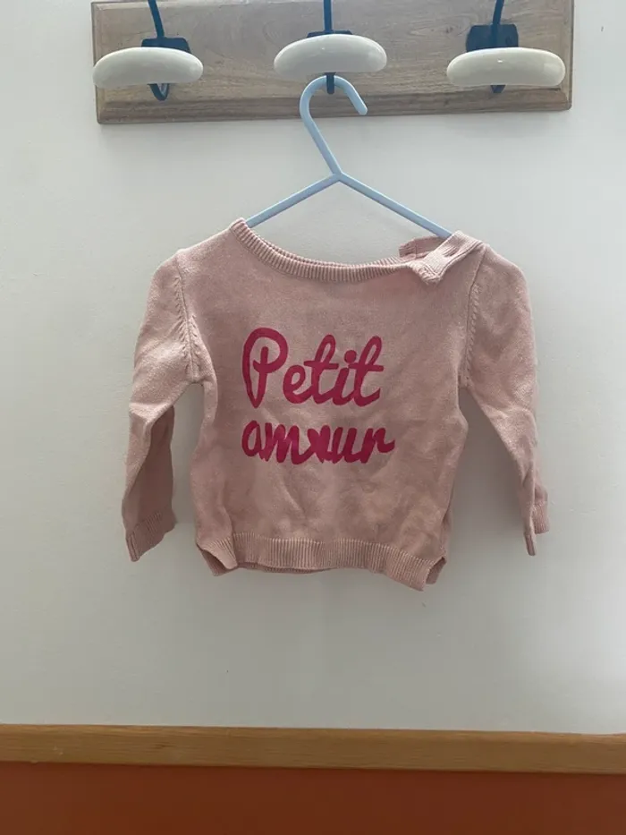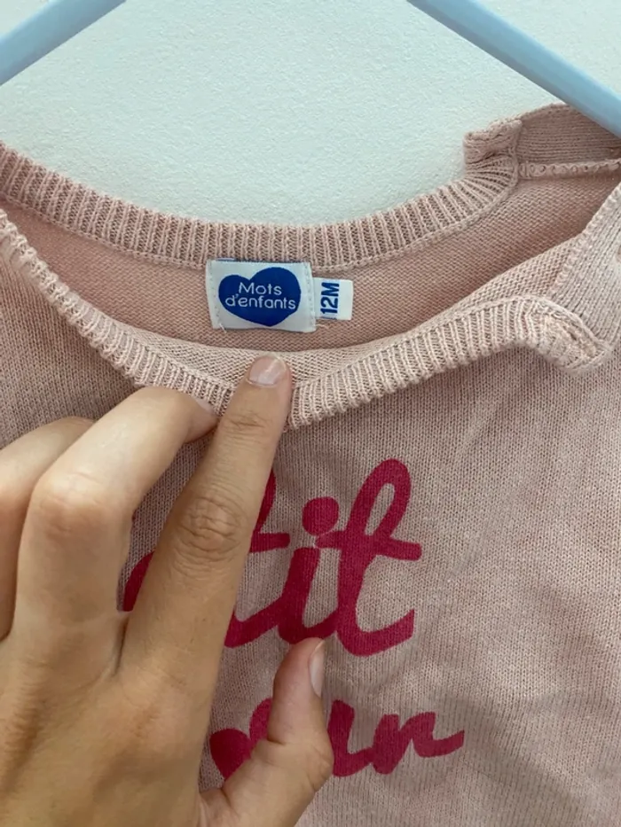 Pull rose « petit amour » mots d’enfants 12 mois En très bon état