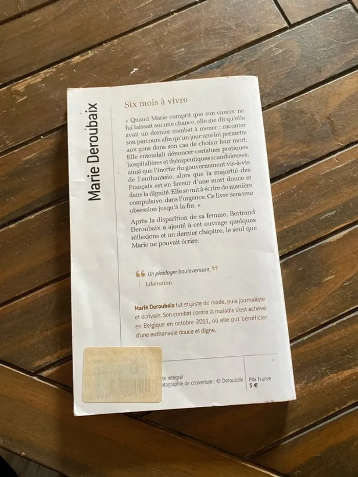 Livre 6 mois à vivre j’ai choisi de mourir dignement Marie Deroubaix