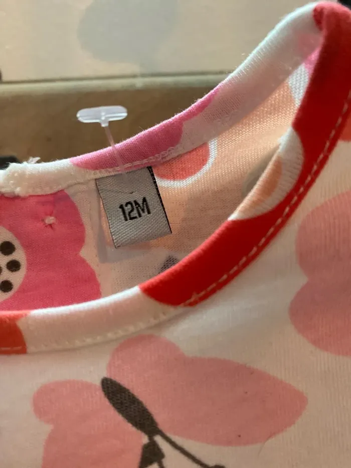 Ensemble tunique pantalon bandeau fleuris dans les tons rouges et roses 12 Mois Neuf avec étiquette