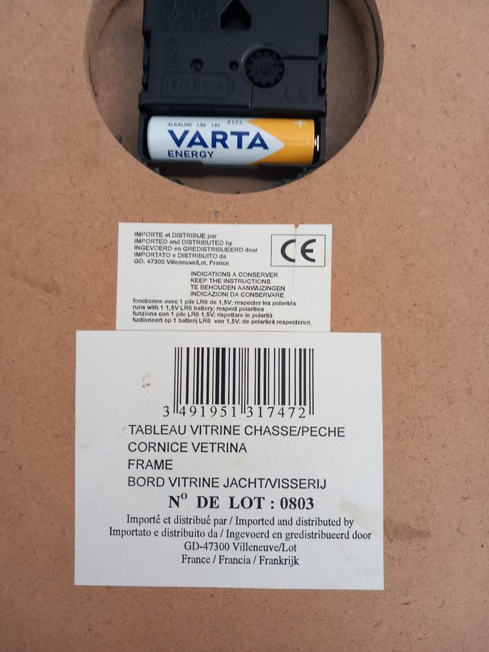 Tableau vitrine chasse / pêche 40x31 cm. Épaisseur 6 cm. Manque le cache pour la pile