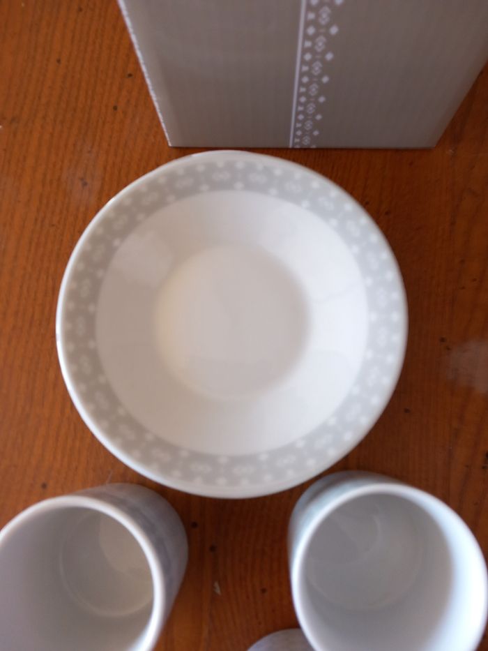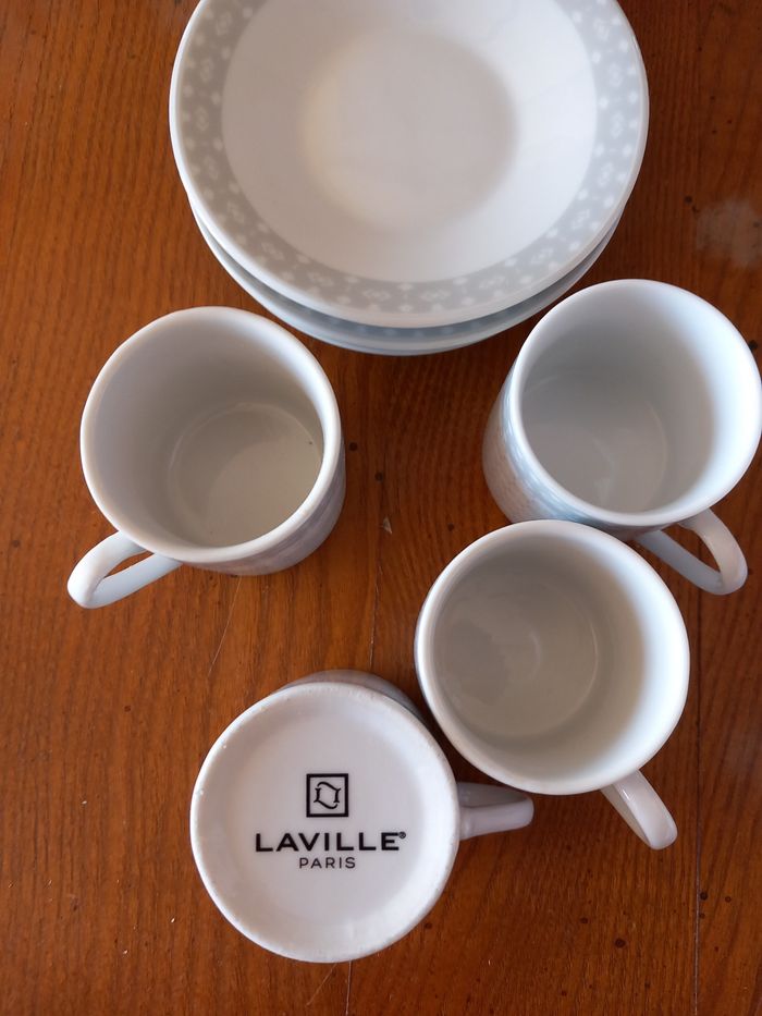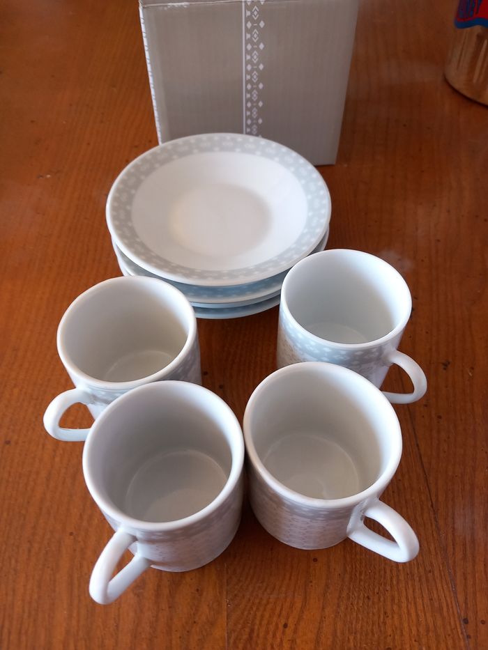 Service à café 4 tasses avec soucoupes blanc/gris
