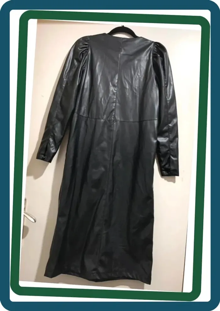 Jamais portée Idéale pour fêtes de fin d’année , pas trop courte ( en-dessous des genoux ) Col V , manches bouffantes . Elle taille plus grand donc plutôt en S. Mensurations à plat : -d’aisselle à aisselle : 44cm -épaules : 31 cm -manches : 65cm -longueur : 109 cm prix neuf :34,99€ #okathy2022robefemme #okathy2022femme36 #robe #similicuir #findannée #findeaño #robenoire #taille36 #simili