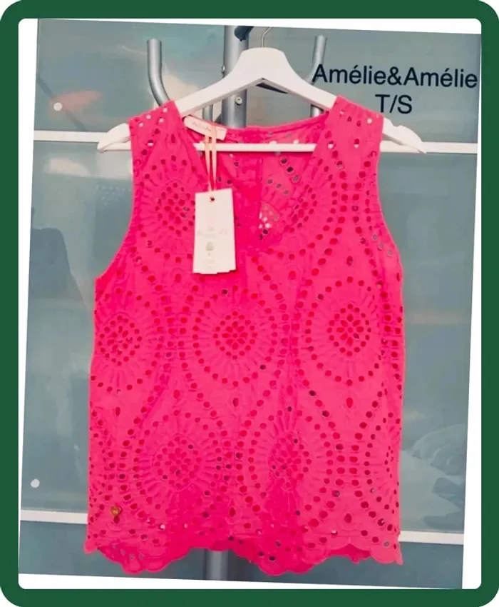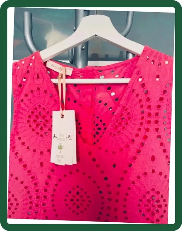 Neuve. Marque Amélie&Amélie. Fabriquée en Italie. 100% fibres naturelles (coton) Couleur: rose 🍬 Fermeture : boutonnières au dos Made in Italy. Mensurations : -d’aisselle à aisselle: 47cm -longueur : 58 cm #okathy2022chemisefemme #okathy2022blousefemme #rosebonbon #topdentelle #amelieetamelie #blousefemme #topété #36