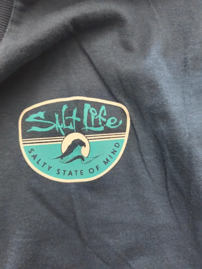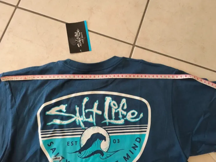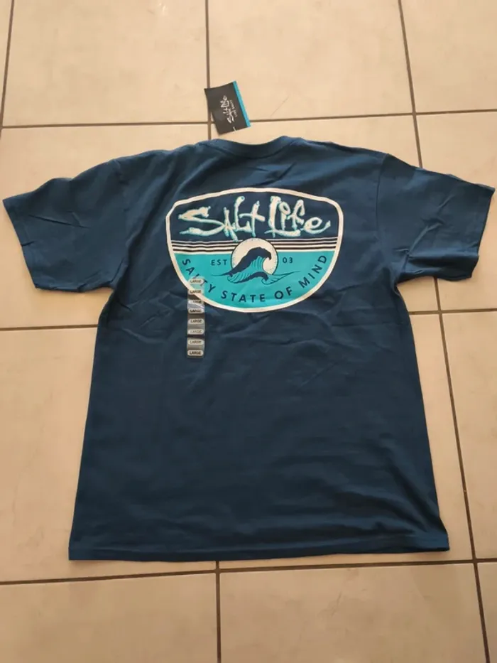 Tee-shirt Homme Salt Life neuf. Thème surf et plage Marqué comme taille L mais correspond plus à un S Possibilité de donner plus de dimensions