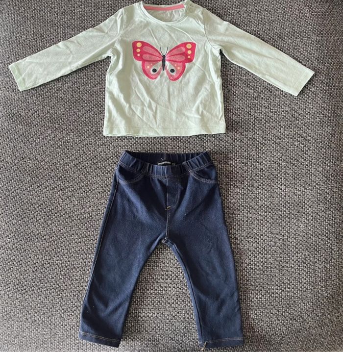Ensemble Bébé fille In extenso 12 mois Legging façon jean, bon état TEE shirt manches longues, très bon état #jessicaeden78fille12mois