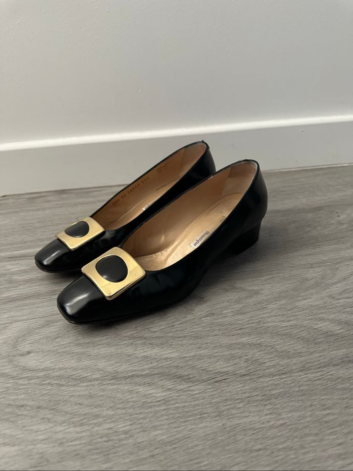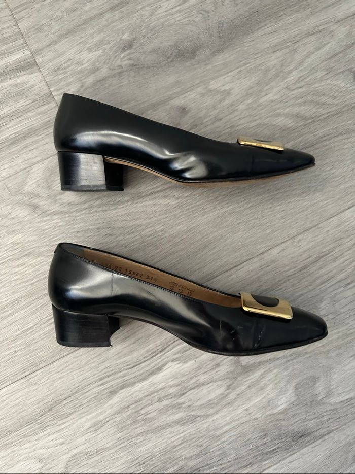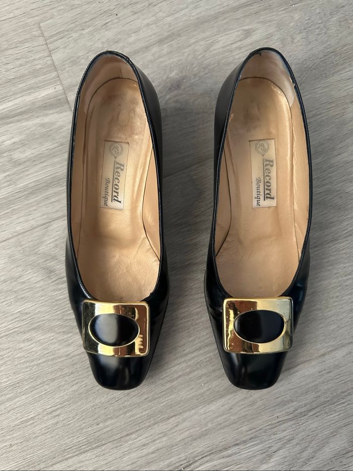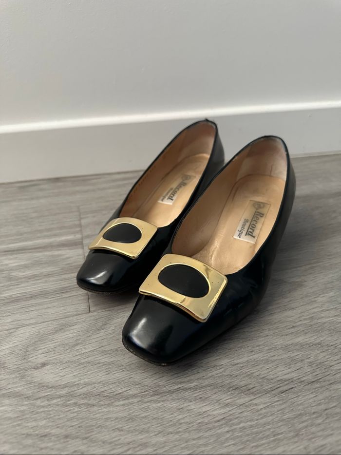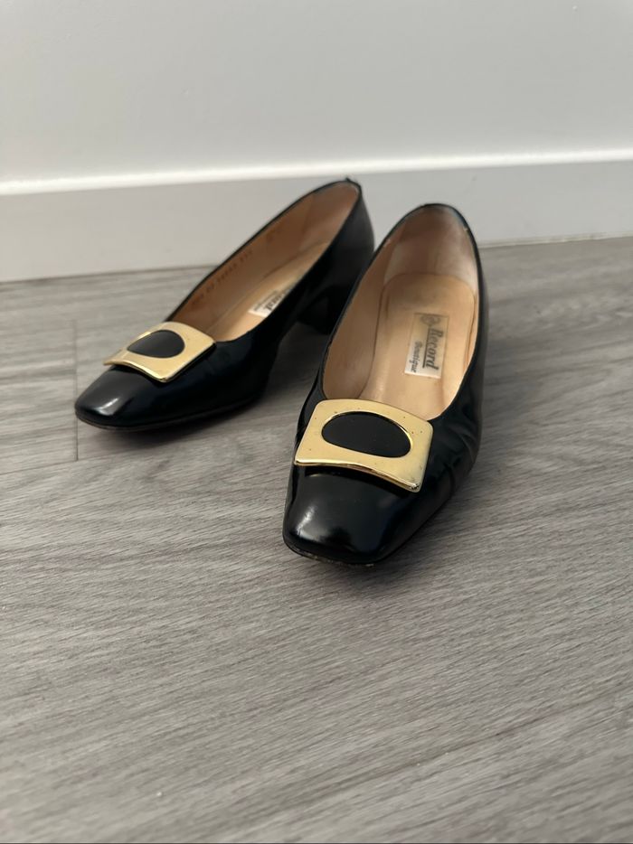 Chaussures à talons en cuir verni noir et doré Mauro Teci Vintage T37,5 - photo numéro 1