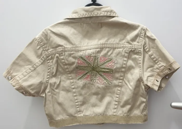 Veste manches courtes Motif drapeau au dos 100% coton Neuf sans étiquette 🏷 jamais porté Taille 8 ans 126cm Marque Chipie