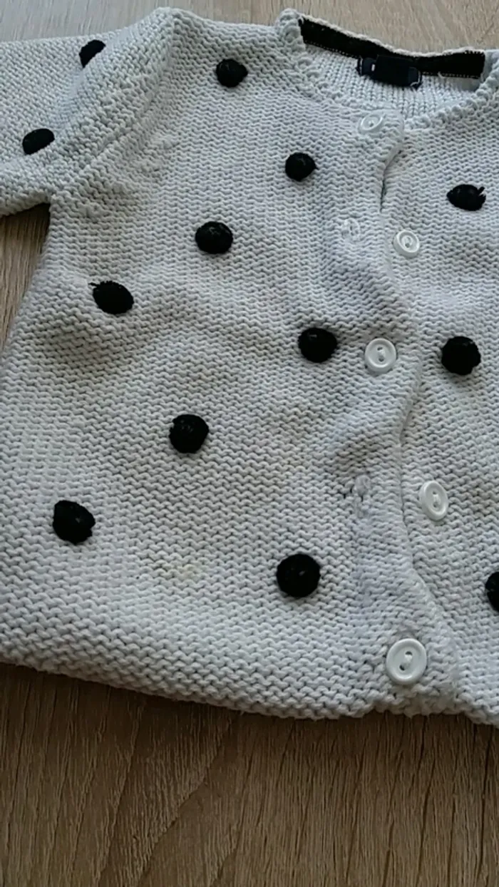 Gilet à boutons avec des petits pompons noir 50% polyamide 50% coton #3moisfilleCrazyMelany #3moisCrazyMelany #3moisfille #giletfille3mois #kiabi3moisfilleCrazyMelany #kiabi3moisfille
