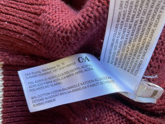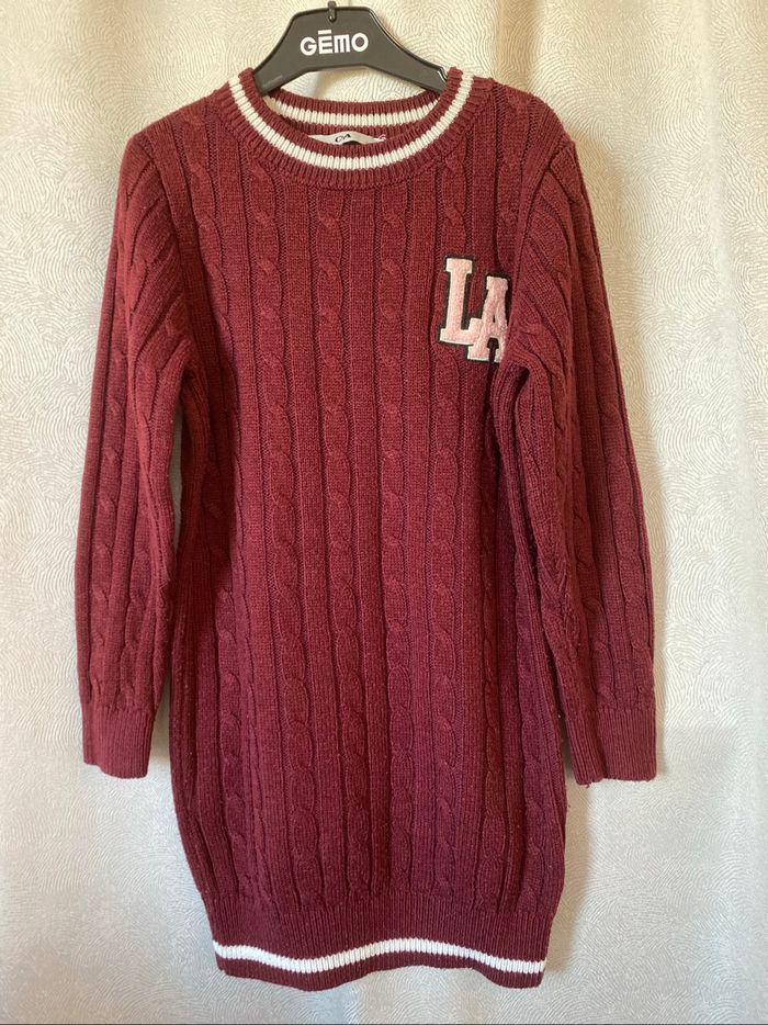 Robe Los Angeles torsadée bordeaux 8 ans C&A 70% acrylique 30% coton Bon état car des bouloches par endroits