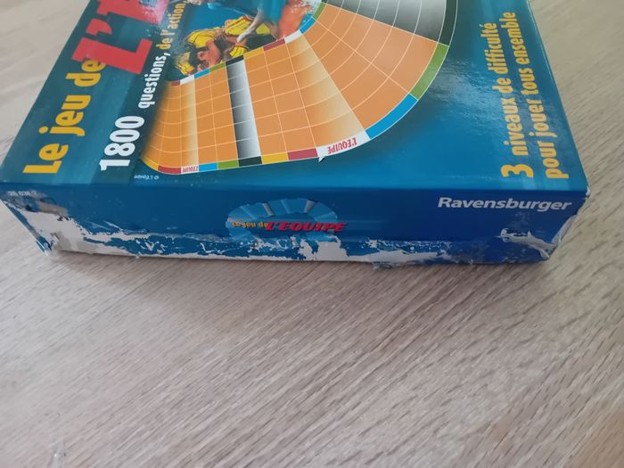 Le jeu de l'Equipe de marque Ravensburger neuf. Le jeu n'a jamais servi (il y a encore des cartes sous plastique). Mais la boîte est abîmée (voir photos). Dès 8 ans. #jeusigtmoi