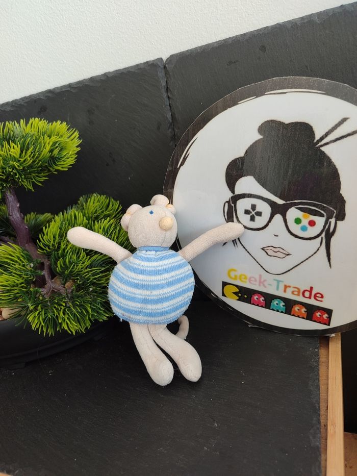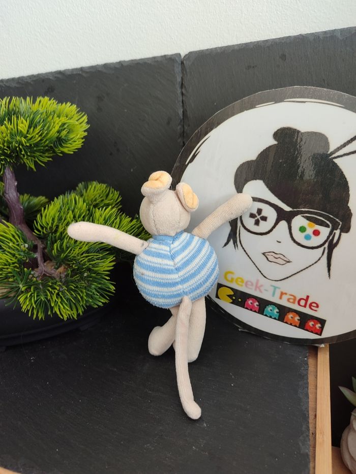 mini peluche moulin roty souris bleu beige blanc rayé rayure ancien DD003249 - photo numéro 1