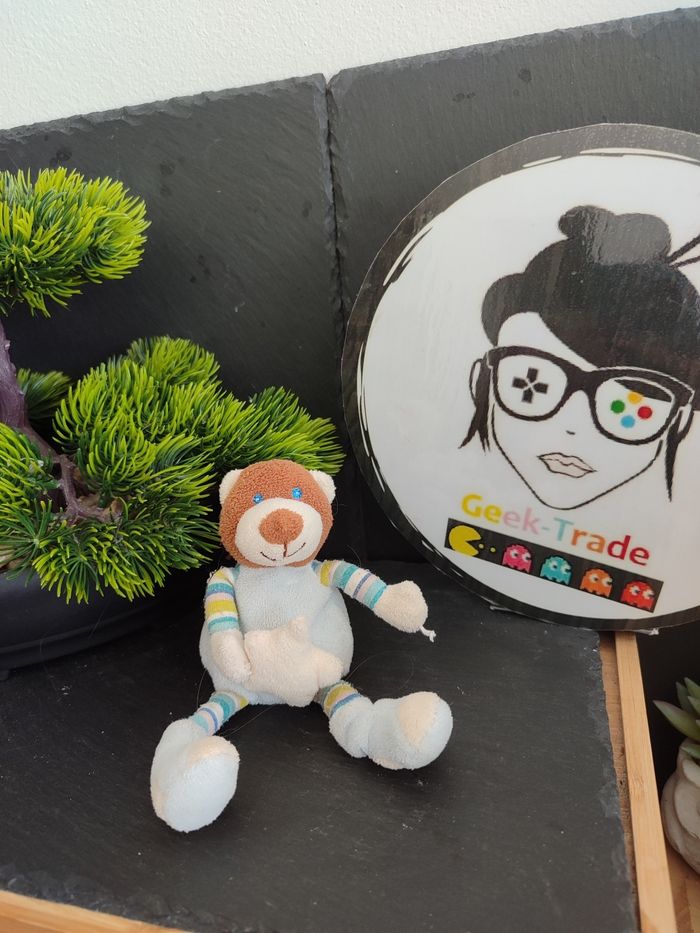 mini peluche doudou gipsy ours bleu marron blanc rayé étoile rayure DD003251 - photo numéro 1