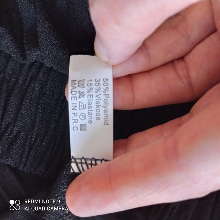 Polyamide, viscose, élasthanne. Je vends le même en couleur violacée. C5