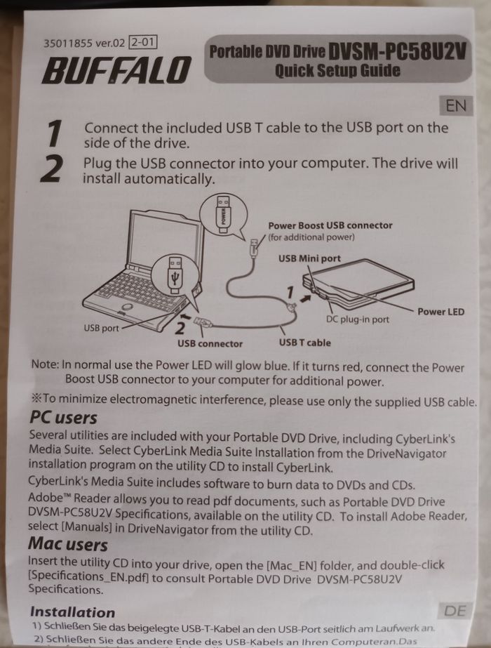 Lecteur Portable Graveur DVD BUFFALO DVSM-PC58U2VB USB + logiciels inclus PC/Mac - photo numéro 9