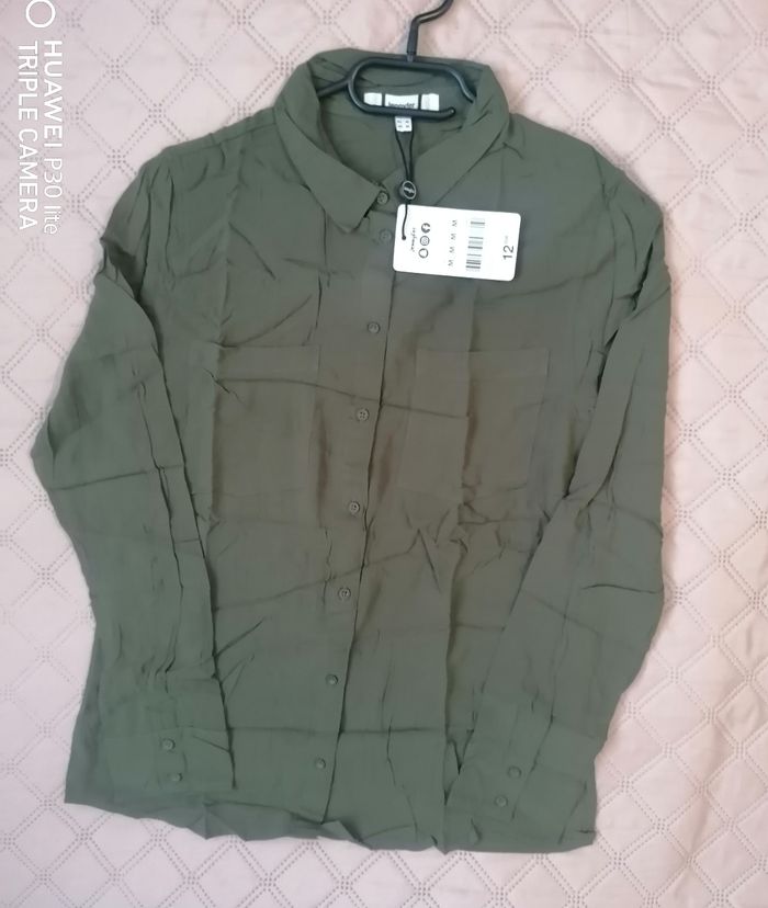 Chemise femme Jennifer, taille :M Vert kaki (photo mal prise). Manche longue, 100%viscose. Neuf avec étiquette. 7€