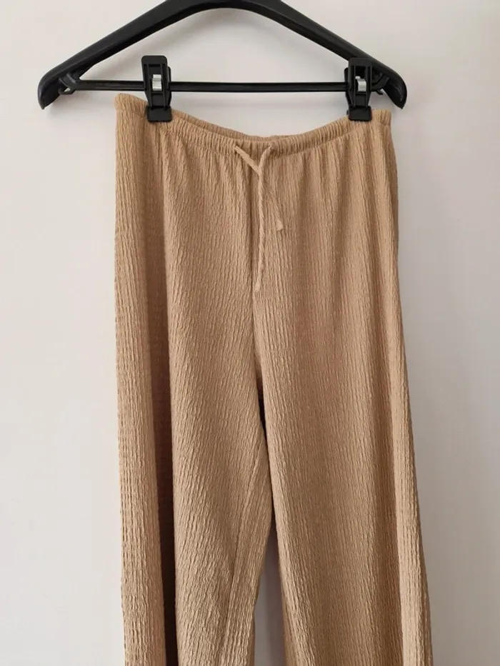 Pantalon en jersey froissé fille de marque H&M ; Taille 14 ans / 15 ans ; Ton beige foncé ; En très bon état #taille14ans_louanne59430