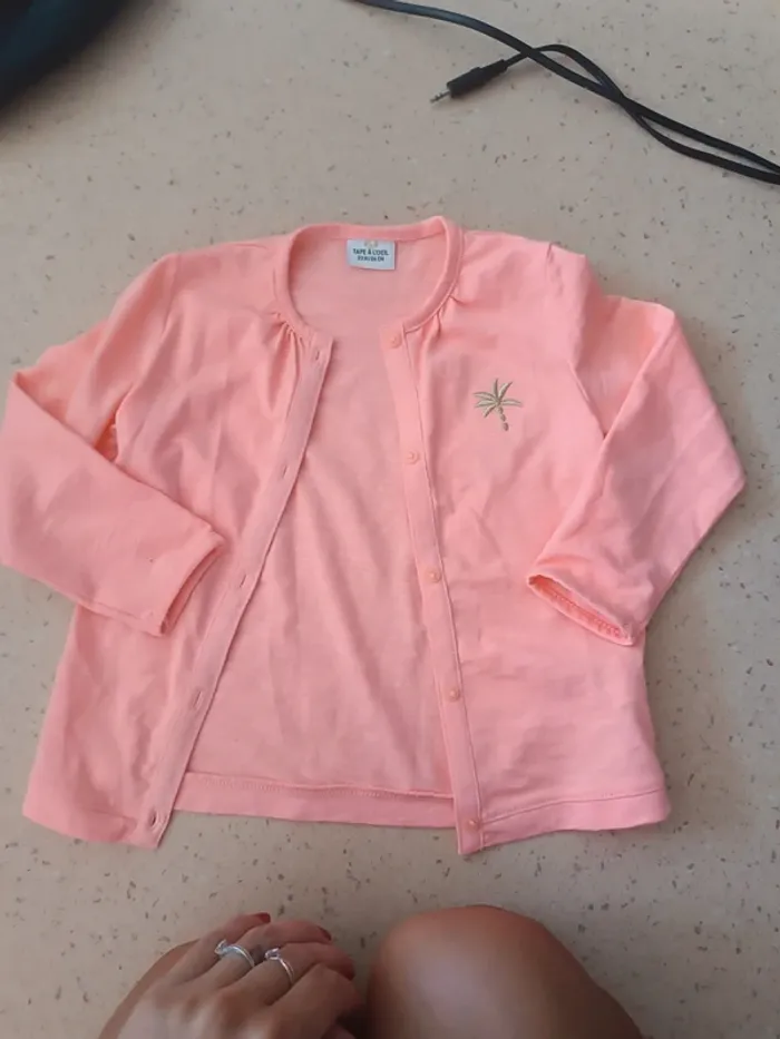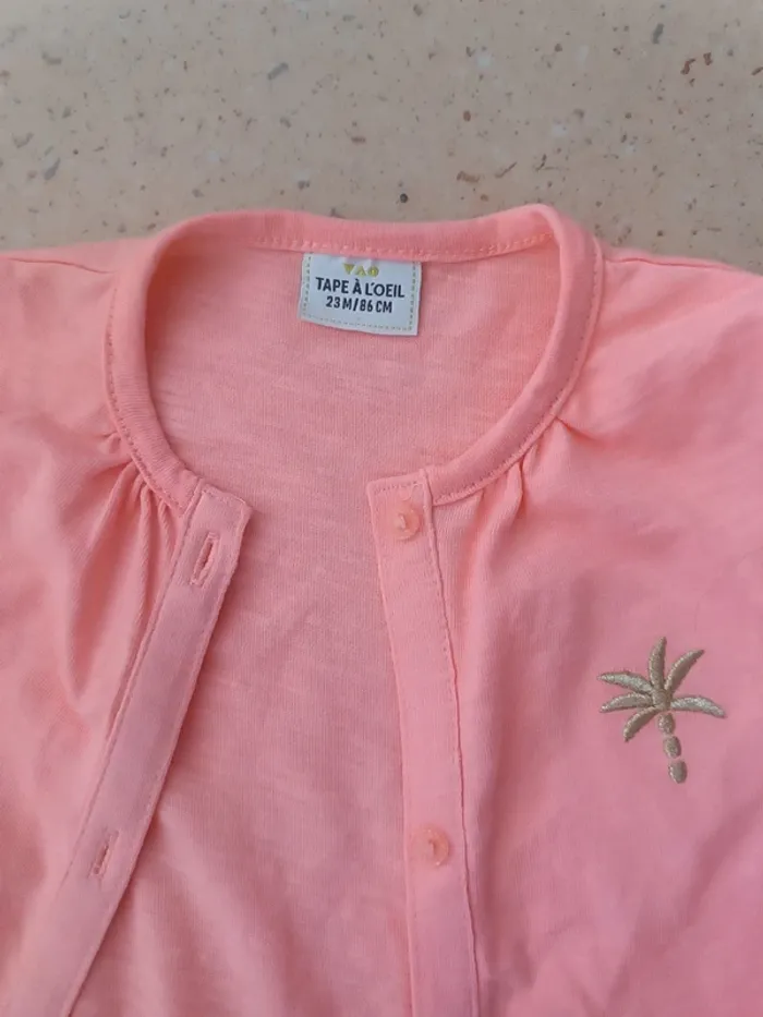 Gilet rose corail. Plutôt fluo Très joli Détails palmier. 23m tao
