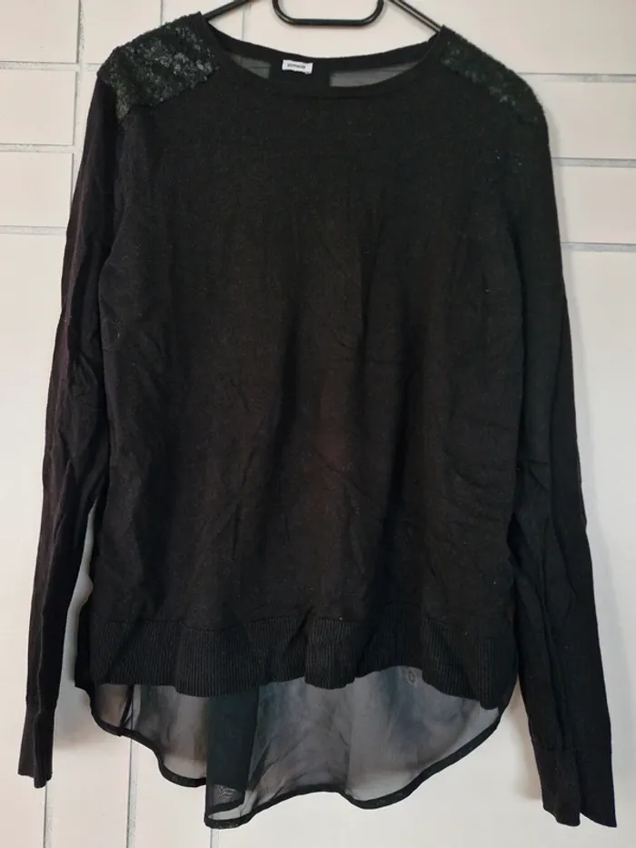 En très bon état Long derrière et Matière transparente Sequins aux épaules L #gagoukittyfemme40 #pullfemme40 #pullpimkiefemme40 #pullpimkie40 #pimkiefemme40