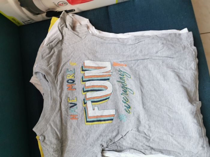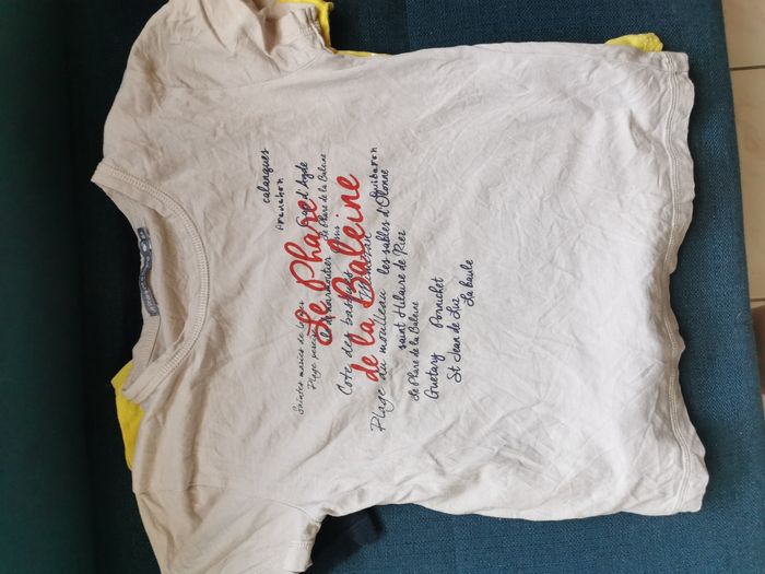 Je vends ce lot de 6 tee shirts manche courte taille 6 ans sauf le jaune taille 5-6 ans. Differentes marque hublot kiabi phare de la baleine