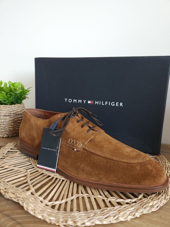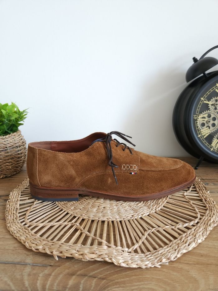 👞 Derbies en Daim à lacets 🧔 Tommy Hilfiger 👞 🖊 ÉTAT ✅️: Neuves 🆕️ - Avec étiquette 🏷 - Dans leur boite d'origine 📦 🖊DESCRIPTION👞: ■ Pointure 46 👣 - 29,5 Cm 📏 ■ Matière: Cuir ■ Drapeau Tommy Hilfiger 🇫🇷 sur le talon ■ Inscription gravée ✒️ "Tommy Hilfiger" sur le côté de la semelle ■ Couleur: Marron 🟤 - Coconut grove 💰Prix boutique: 139.90€💵