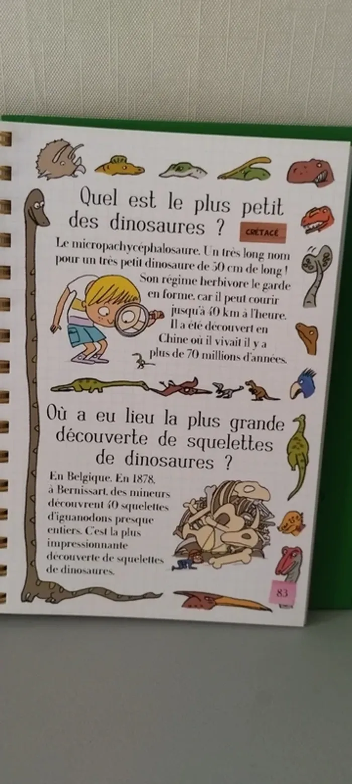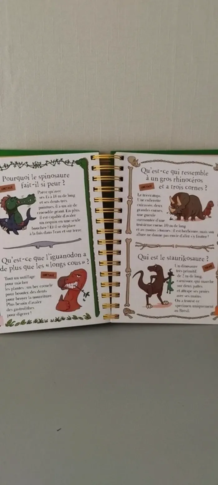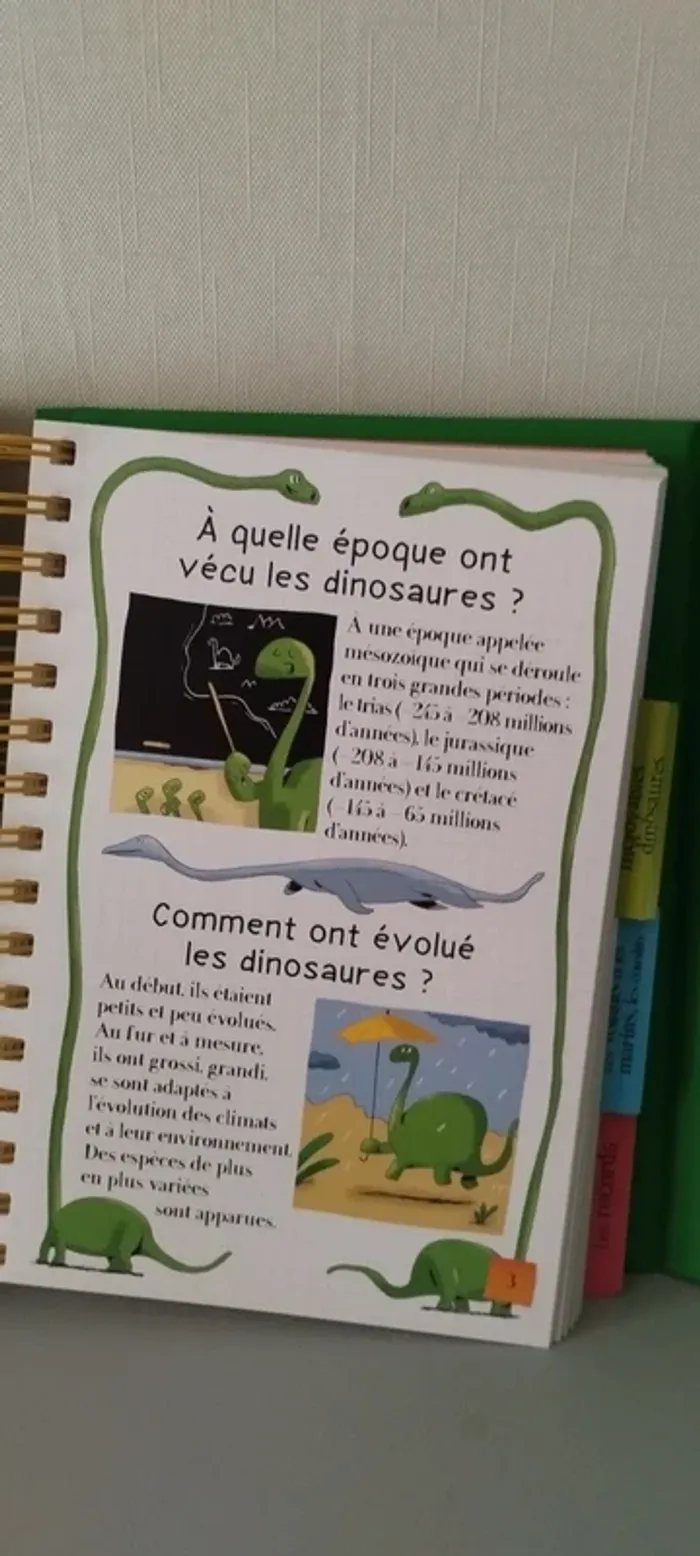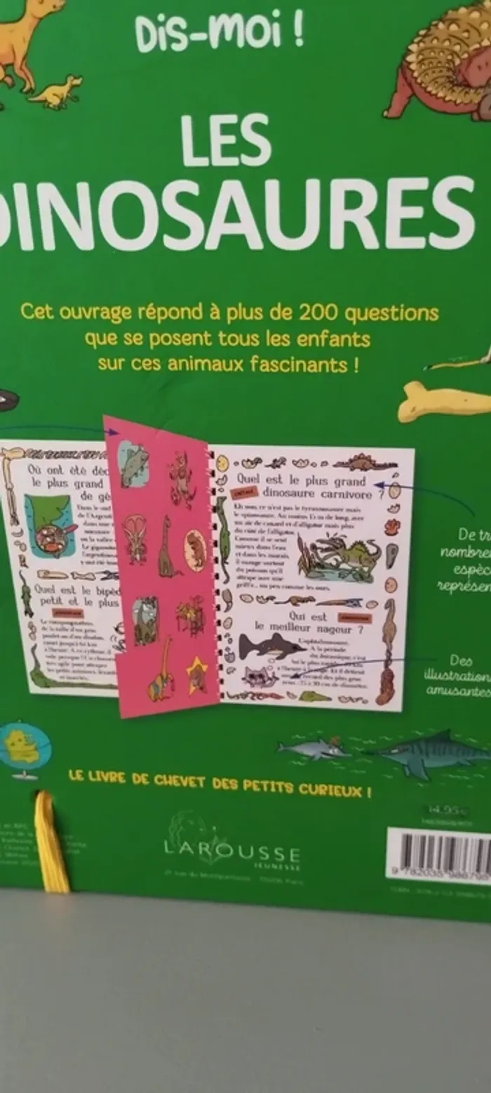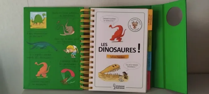 Livre classeur les dinosaures Le livre de chevet des petits curieux ! 4 thèmes séparés par des onglets : Le temps des dinosaures Incroyables dinosaures Les volants et les marins, les cousins Les records De très nombreuses espèces représentées, des illustrations amusantes. Édition Larousse jeunesse 2020 Très bon état. #linejaclivres