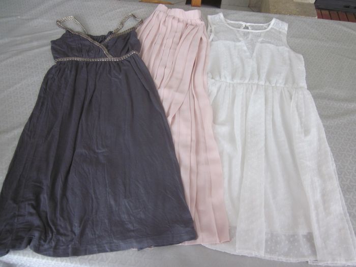 36, 2 robes + jupe longue plissée doublée, kiabi