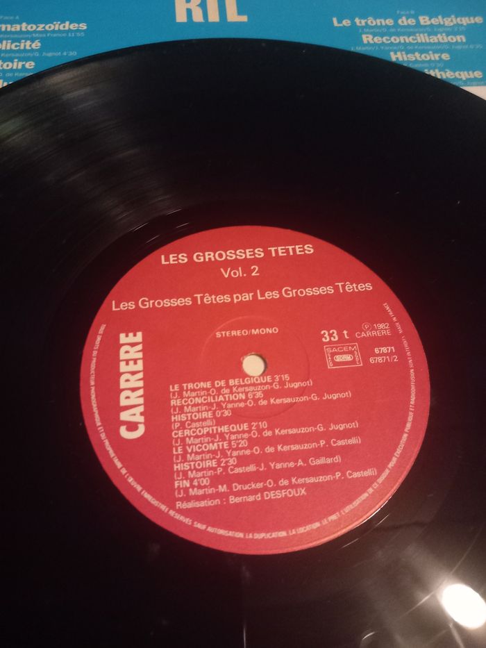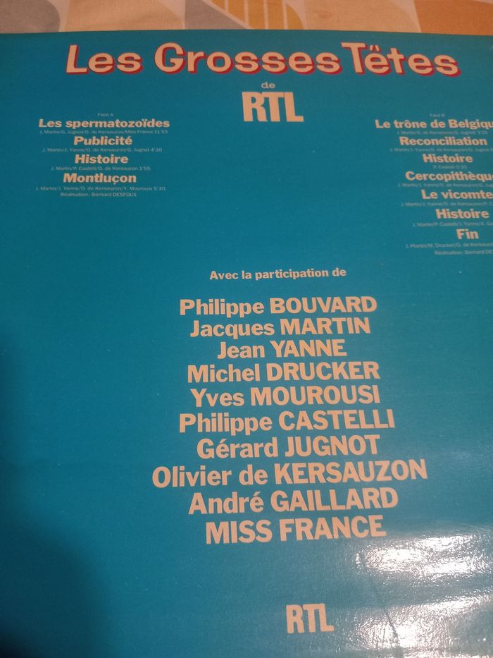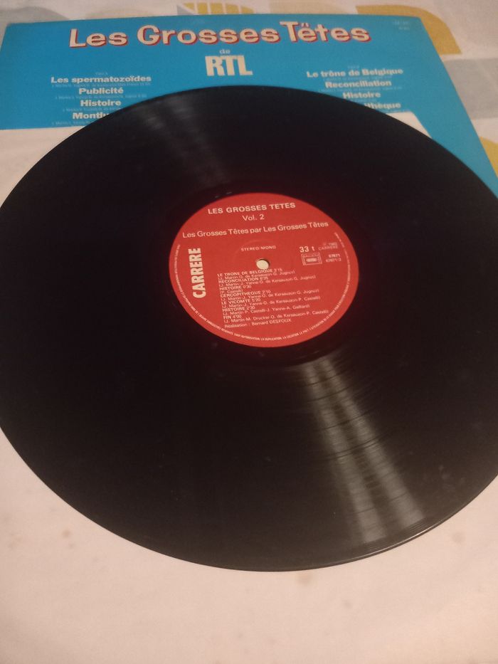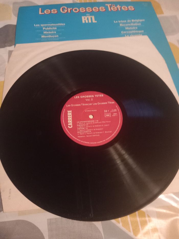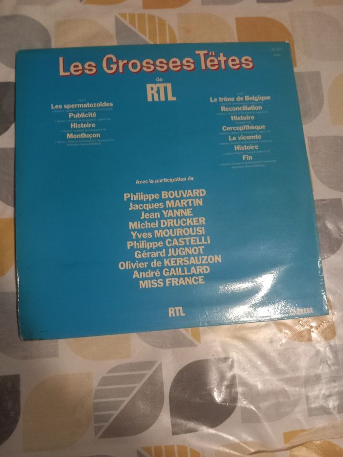 Disque vinyle 33 tours Titres : les grosses têtes de RTL Face A 4 titres Face B 7 titres En bon état
