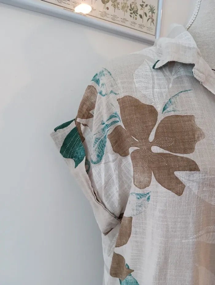 Chemise longue écrue  fleurs vertes et marron - photo numéro 10