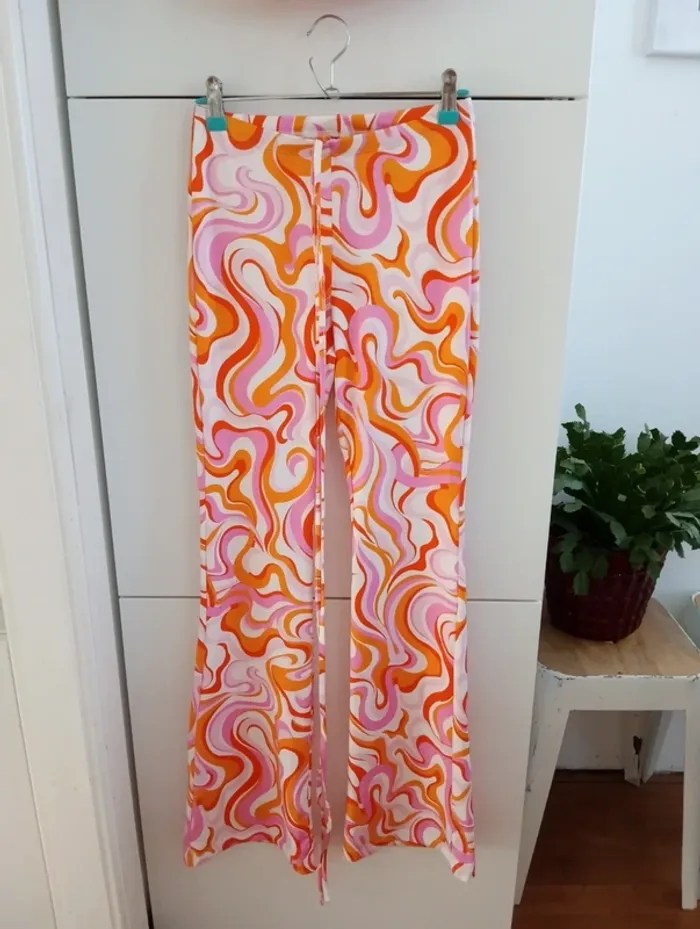 Ensemble psychédélique H&M Divided taille XS Pantalon bas evasé, top court Motif et coupe 70's