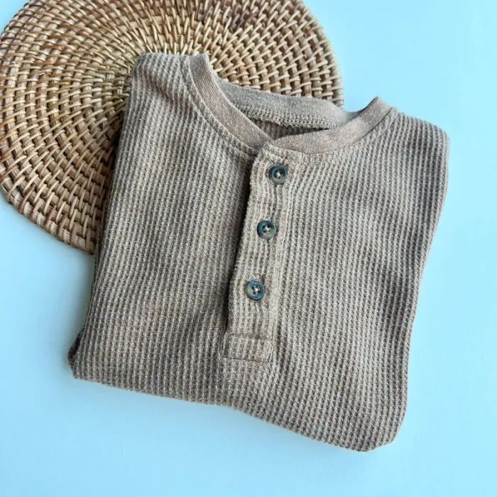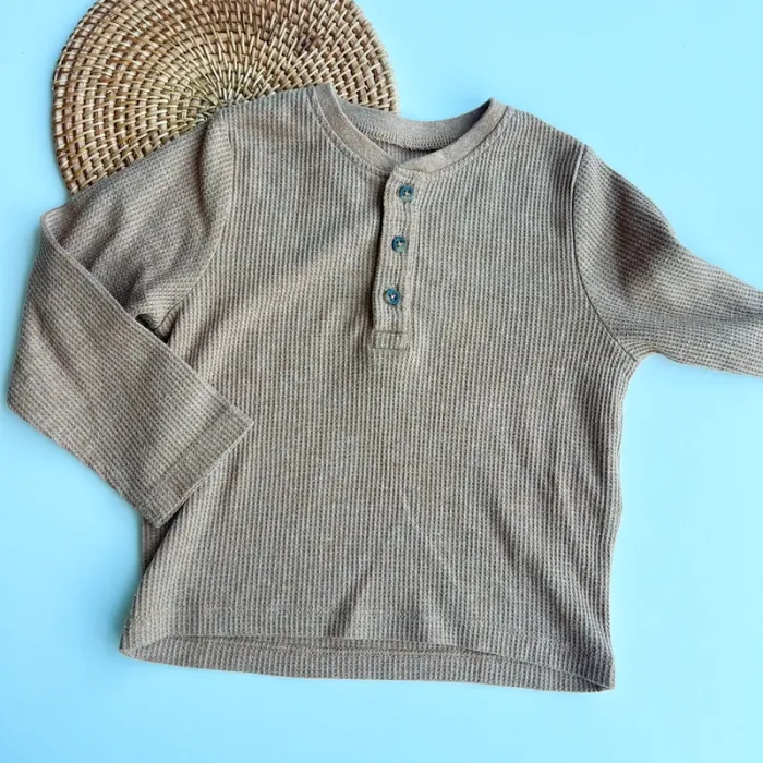 Col tunisien Nid d’abeille marron Vertbaudet 18 mois (81cm) UNIQUEMENT le haut manches longues #bebe18moisvidedressingdu40