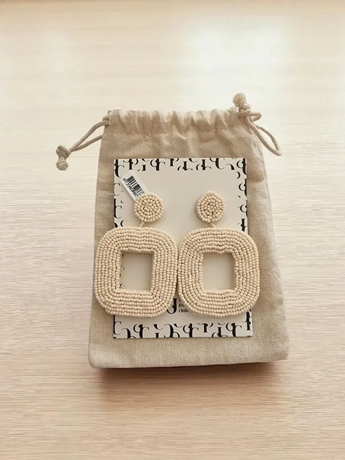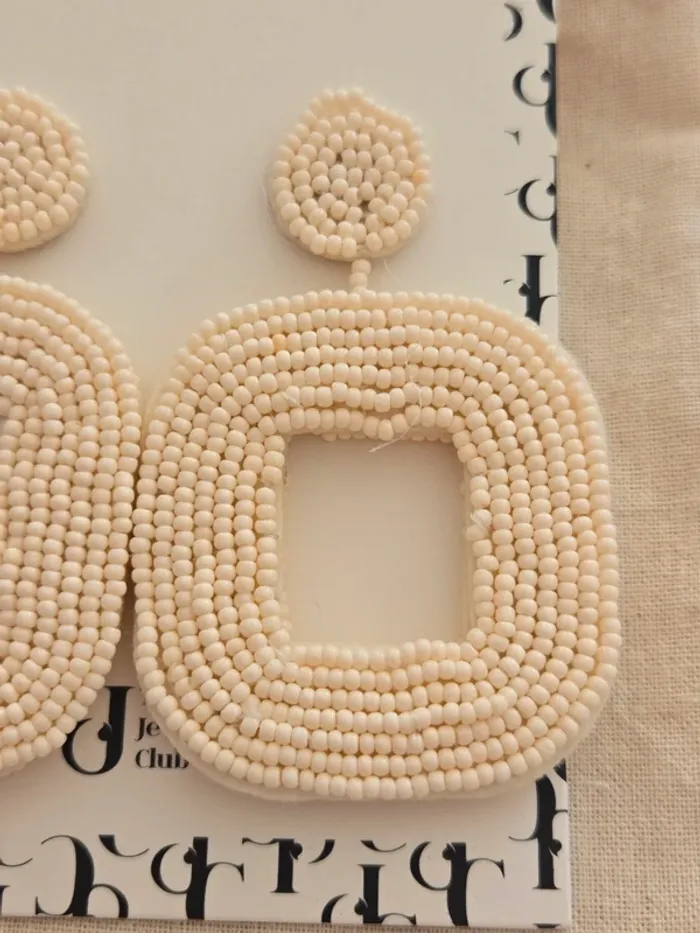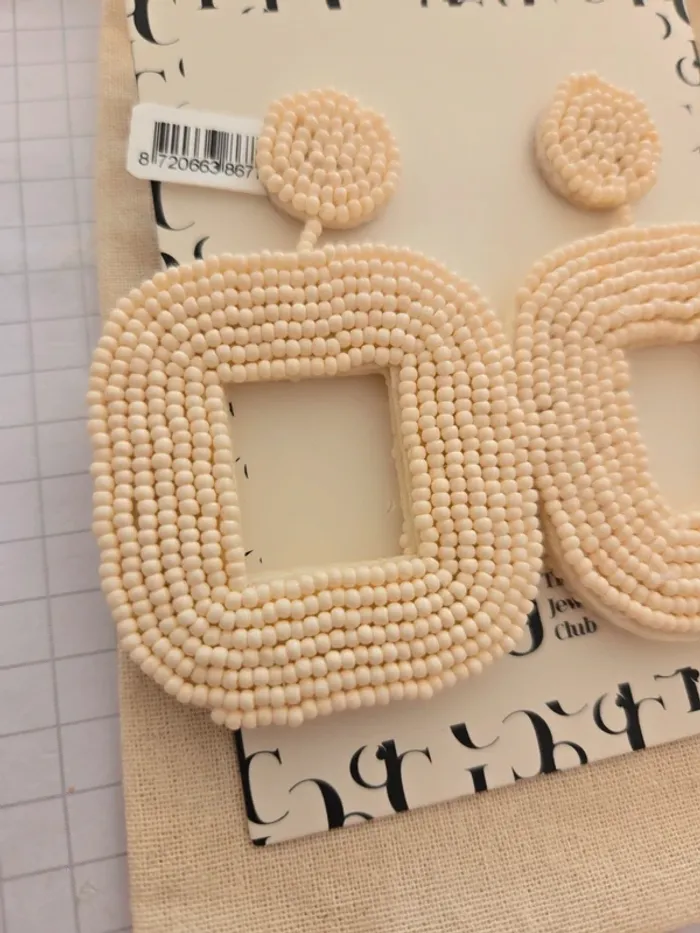 The Jewellery Club Paire de boucles d'oreilles bohême Perles couleur crème NEUF avec étiquette et pochon de protection Longueur: 7 cm Largeur maxi: 4,8 cm Acier inoxydable pour le pic #thejewelleryclub #bouclesdoreillesboheme #bijoux ADN.168