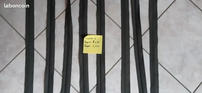 PRIX DE VENTE NON-NÉGOCIABLE Idéal pour les couturières Lot composé de 4 très grandes fermetures à glissières Couleur kaki Dimensions 2m40 X 3,5 cm Lot à Vendre "ensemble"