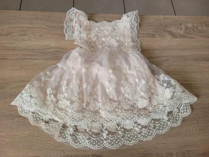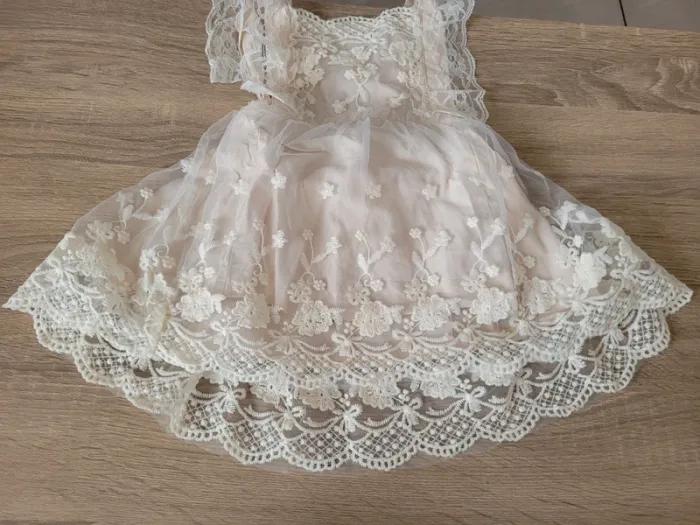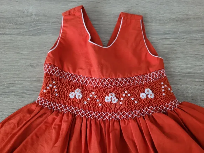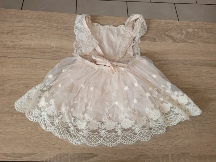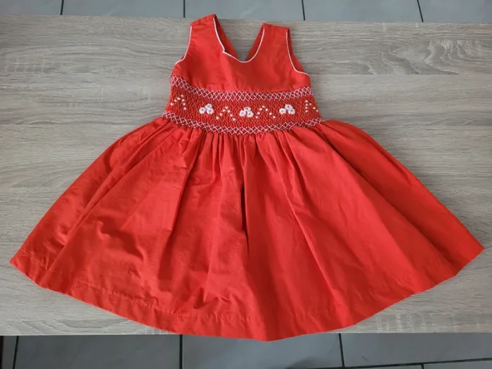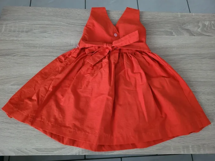 Vend lot de 3 robes taille 18 mois en très bon état. Lot comprenant une robe tablier en dentelle idéale cérémonie et une robe rouge style vintage achetée dans une boutique indépendante qui vend des robes du même style.