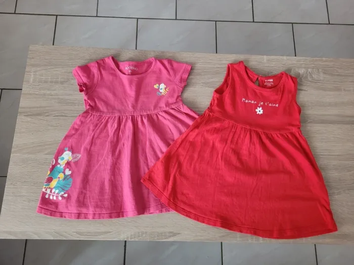 Vend lot se 2 robes manches courtes et sans manches taille 18 mois en très bon état.