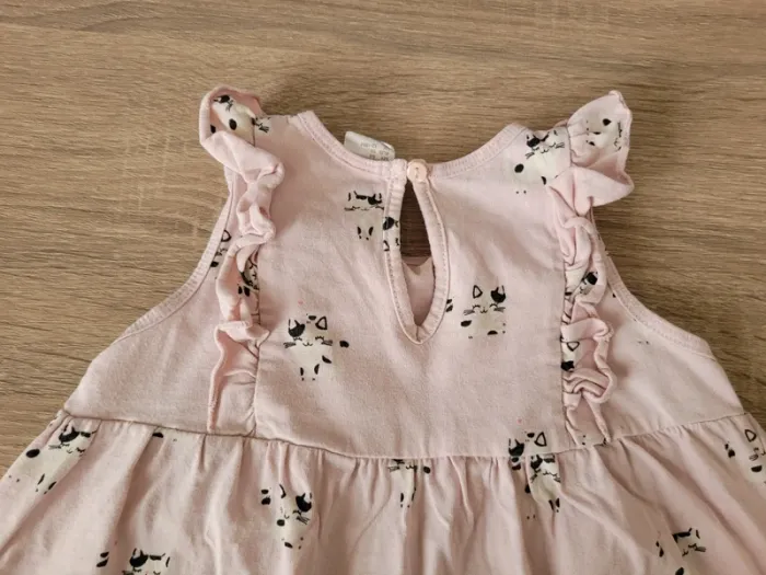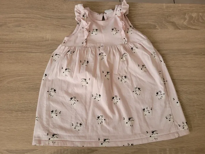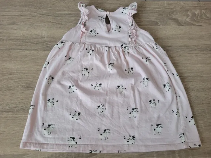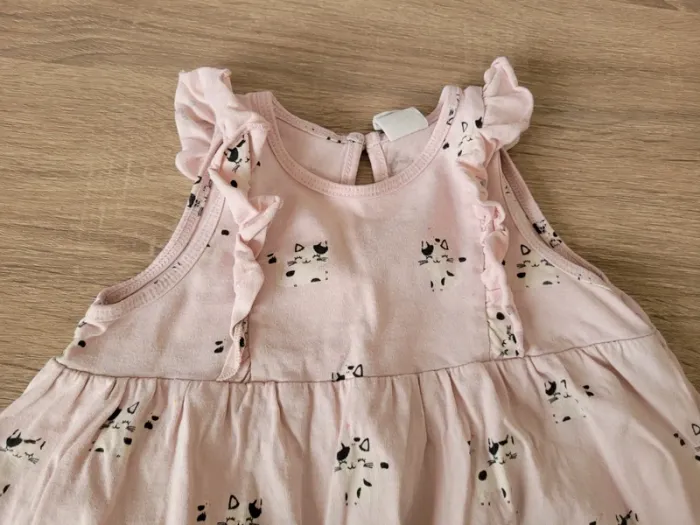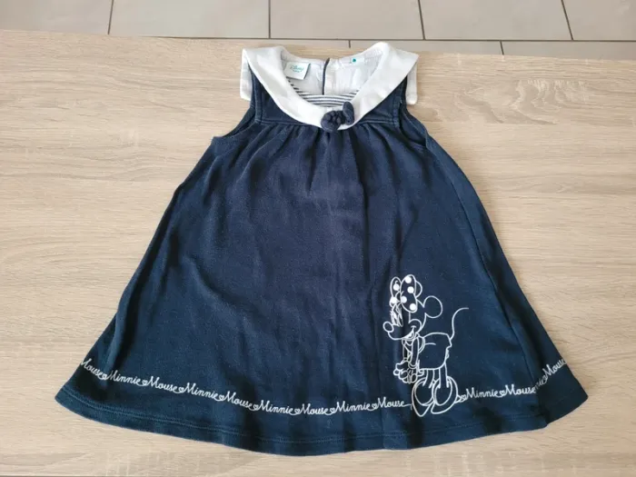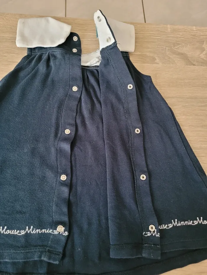 Vend lot de 3 robes sans manches dont une Minnie, taille 18 mois et 12/18 mois pour une rose motif chat H&M mais mes filles l'ont porté lorsqu'elles portaient du 12 et 18 mois. Lot en bon état.
