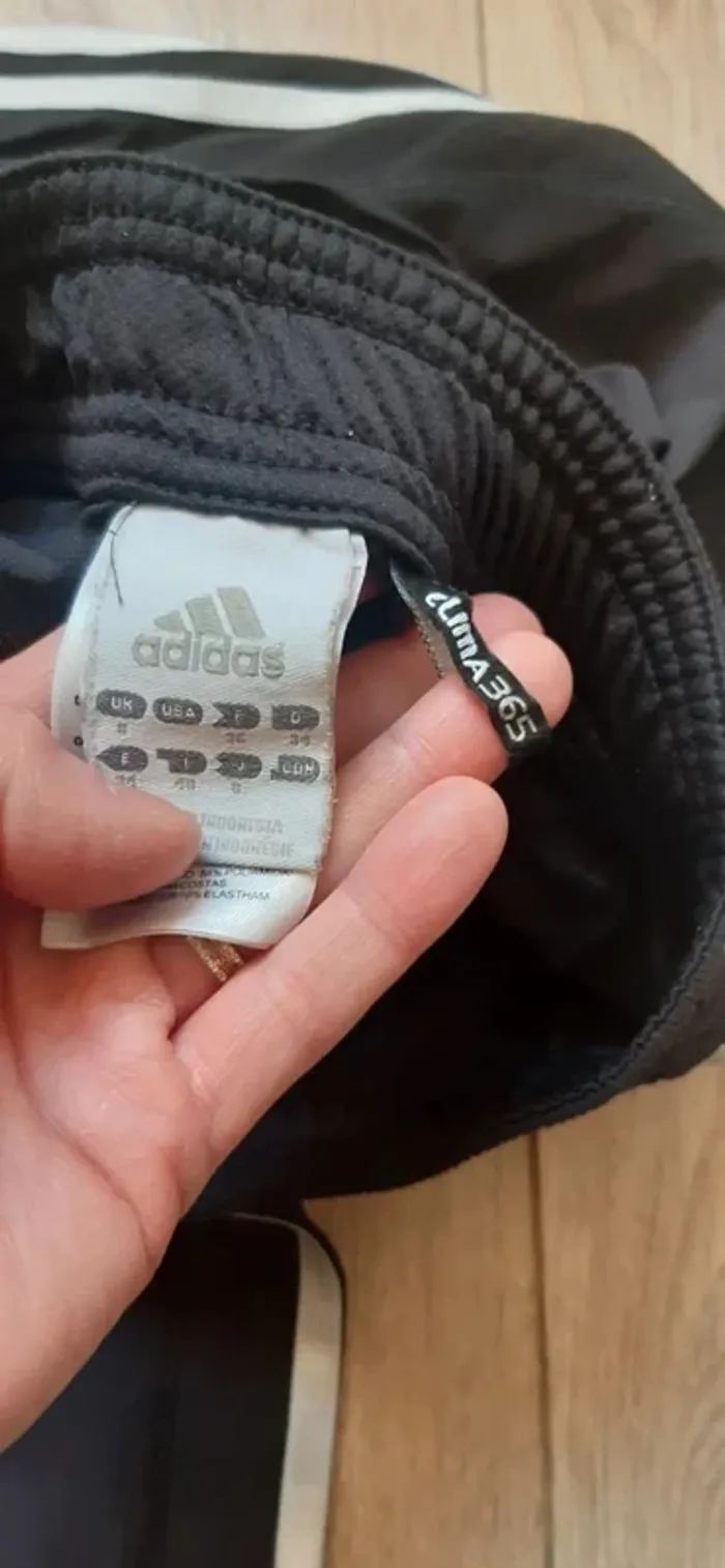 Je n'accepte pas d'offre merci ! Pantacourt de sport Adidas climate 365 noir à 3 bandes Muni de poches Bouton pression Matière légère et très agréable à porter (un peu élastique) Modèle qui a quelques années et qui a été très très peu portés en parfait état (a noter : l'inscription "climate " est légèrement abîmée, visible sur les photos)