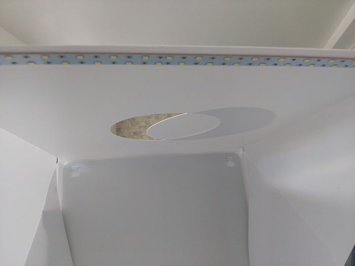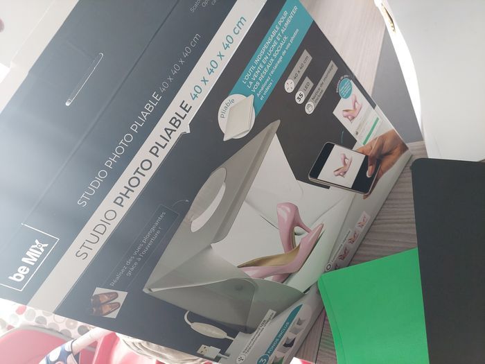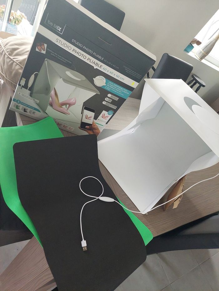 Station photo avec lumière Voir photo 3 fonds dont le blanc est un peu sale pas osée le laver petit défaut sur le haut voir photo