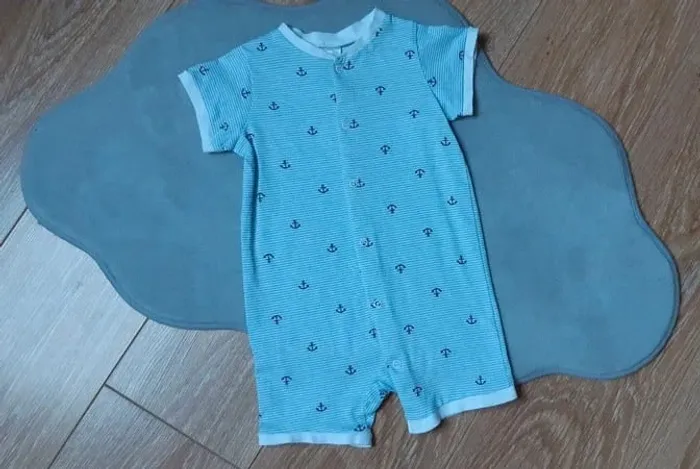 Prix de vente ferme merci Combinaison courte / combishort h&m blanche rayée bleu clair motif marin (ancre) 9/12 mois (80 cm) Neuve jamais portée Pour visualiser tous ce que je possède en 12 mois garçon : #ambre6269012mgarçon