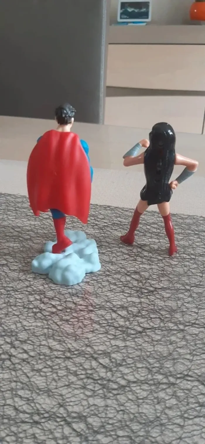 JE N'ACCEPTE PAS D'OFFRE MERCI Lot de 2 figurines "supers-heros" Superman et super-heros "femme" (burger king) Les 2 personnes sont articulés. (Bras, jambes ect....) Superman se retire du socle état neuves pour les 2.
