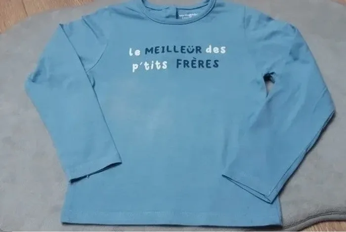 Tee-shirt ML vertbaudet bleu "le meilleur des p'tits frères" 36 mois en bon état - photo numéro 1